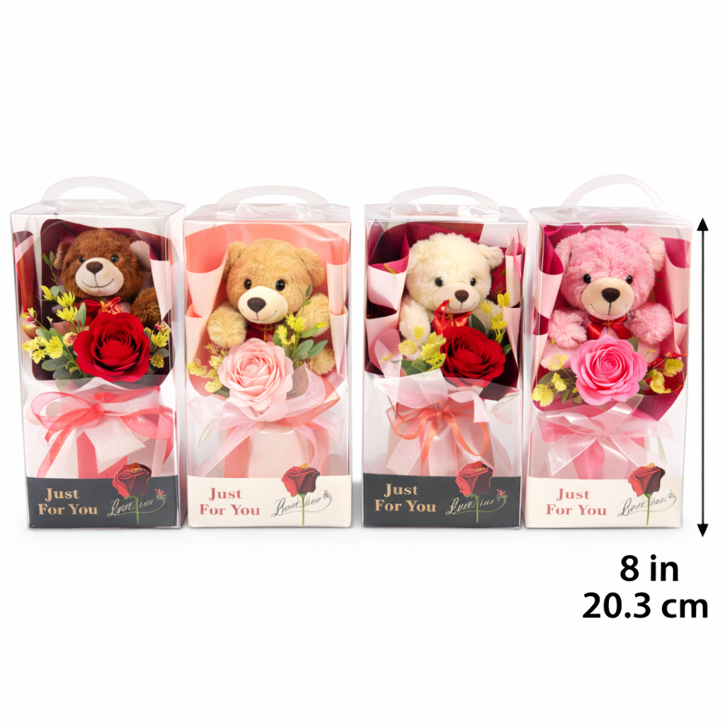 S Rose Bouquet w Bear & Leds